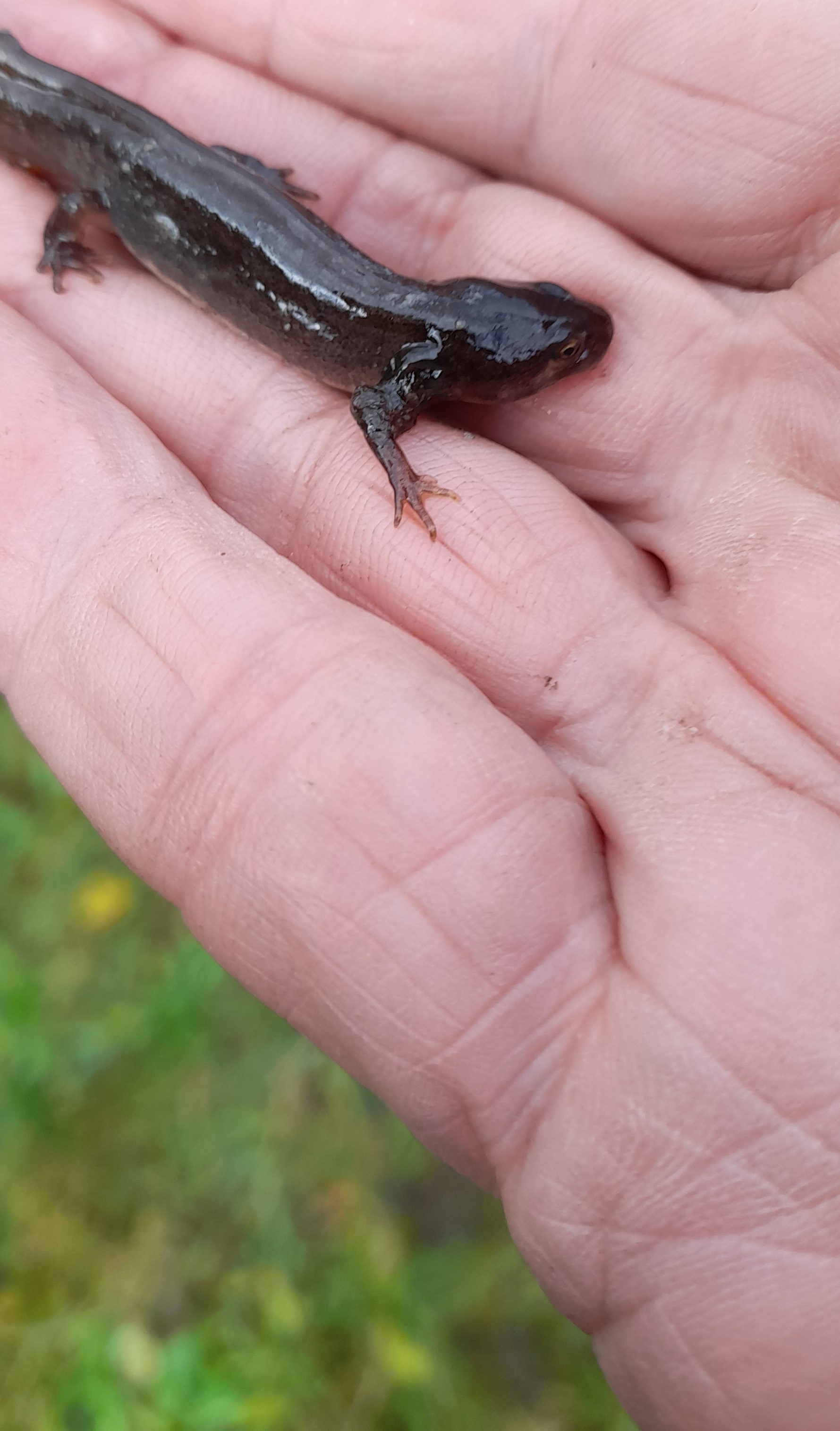 Tijdens de werkzaamheden werd er nog een heel interessante waarneming gedaan. Tussen het kroos zat een Kleine Watersalamander met volwassen afmetingen, echter met duidelijk zichtbare aanhangsels boven de voorpootjes, de uitwendige kieuwen. Dit is een dier dat nog nooit het water heeft verlaten. Dit verschijnsel wordt veroorzaakt door jodiumgebrek in het voedsel en heet neotenie.