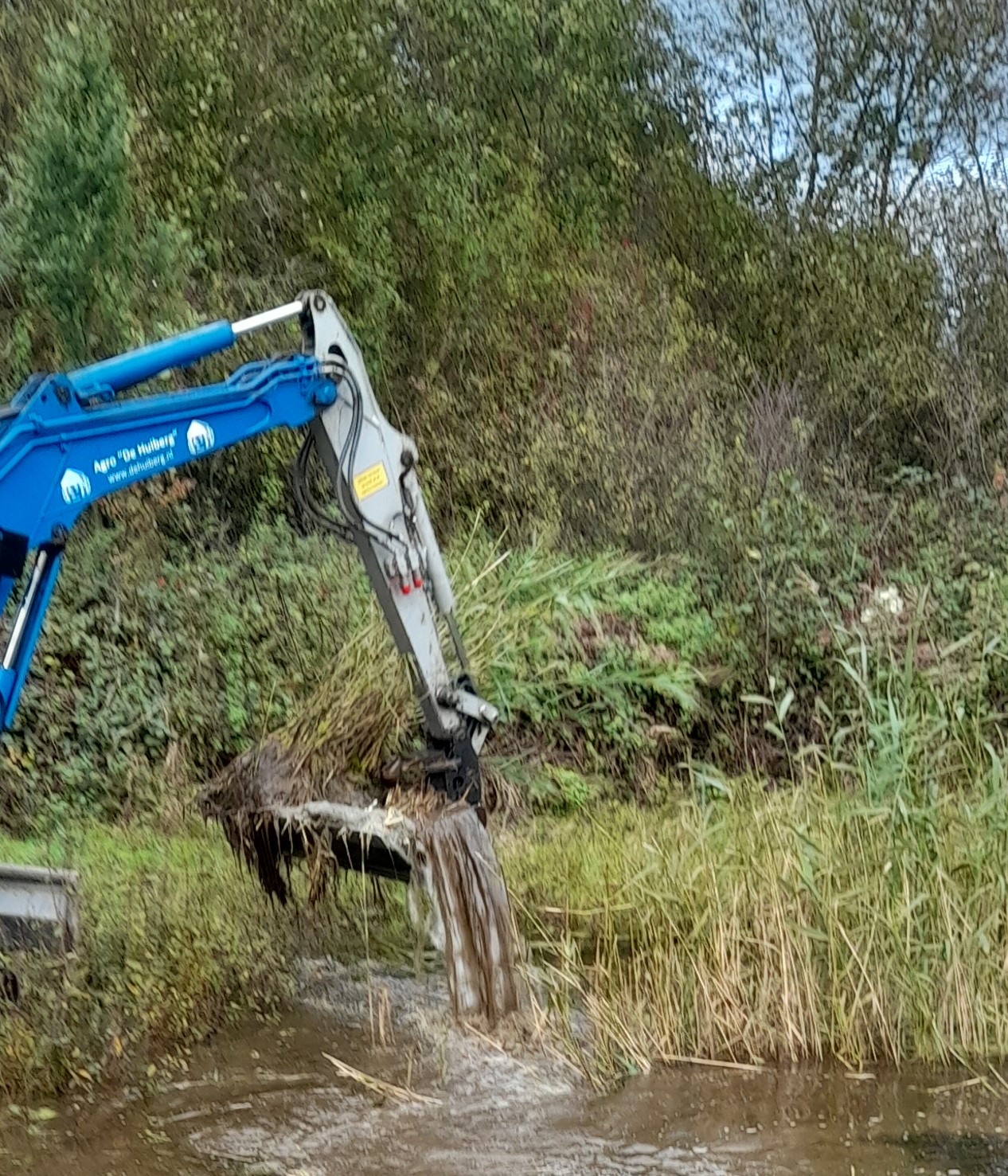 Om de natuurwaarde van onze poelen en beekjes te behouden is het belangrijk dat deze regelmatig worden onderhouden. Eens in de pakweg 5 jaar, soms eerder, soms later, groeien en slibben ze dicht. Daarom is er op 31 oktober een rupskraan de hele dag bezig geweest met het verwijderen rietpakketten, tapijten van waterplanten en vooral veel modder. Als eindresultaat hebben we weer stromende bronbeekjes, goed voor bijzondere soorten zoals Beekoeverlibel en Bronlibel en andere macrofaunasoorten. En de dichtgeslibde poelen liggen er weer kraakhelder bij, belangrijke voortplantingsplekken voor de Boomkikkers, Knoflookpadden en salamandersoorten uit ons gebied. Zie bijgaande foto's van de werkzaamheden.