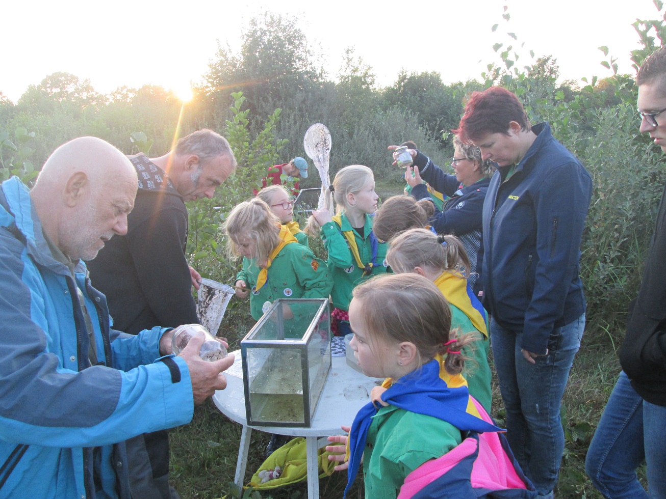 Op vrijdagavond 7 september 2018 hebben een 30-tal kabouters van de Scouting Belfeld gewapend met allerlei gekleurde visnetjes een bezoek gebracht aan De Boet en directe omgeving. Na eerst gezocht te hebben naar boomkikkers en iets later naar de wilde paarden, werd er tenslotte heel fanatiek gevist naar allerlei waterdieren in een van de vijvers. Gevangen dieren werden naar een aquarium gebracht en met hulp van zoekkaarten werd dse soortgroep bepaald. Gevangen zijn libellenlarven, staafwantsen, waterkevers, spinnen, bootsmannetjes, ruggenzwemmers, bloedzuigers, zoetwaterkreeftjes, amfibieenlarven en jawel hoor: een boomkikker!