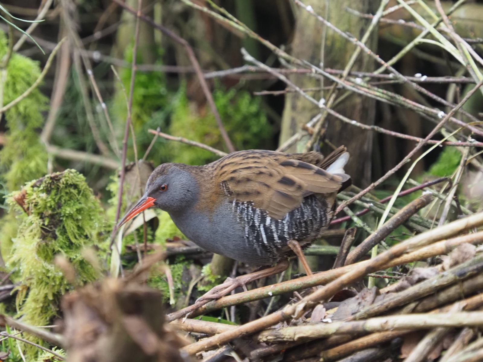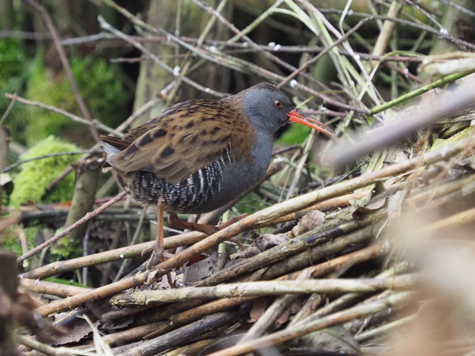 Van Jan Wilms ontvingen we enkele foto's van de bijzonder schuwe waterral, genomen vanaf de vogelkijkwand in ons gebied. Deze vogel wordt meer gehoord dan gezien.
